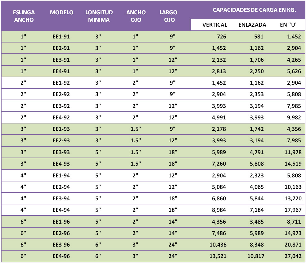 - Los puntos de contacto pueden rotarse incrementando el tiempo de vida de la eslinga.